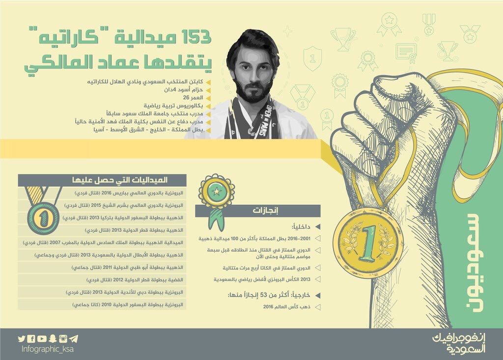 تصدر لاعب المنتخب السعودي للكاراتيه عماد المالكي ترتيب اللاعبين في جولات الدوري العالمي بمنافسات القتال تحت وزن 60 كجم ، بعد ختام الجولة الثامنة من الدوري العالمي الذي ينظمه الاتحاد الدولى للكاراتية.